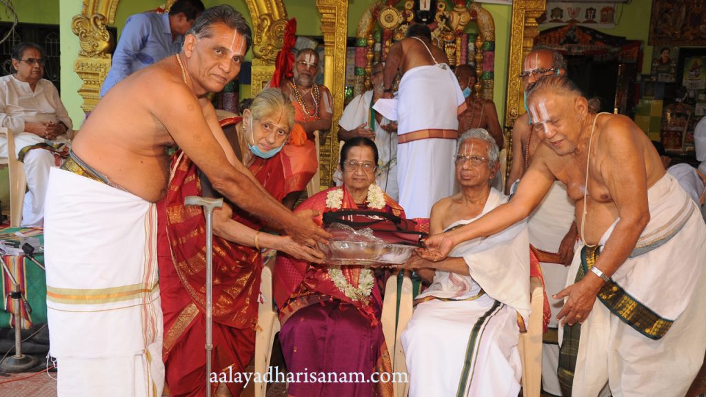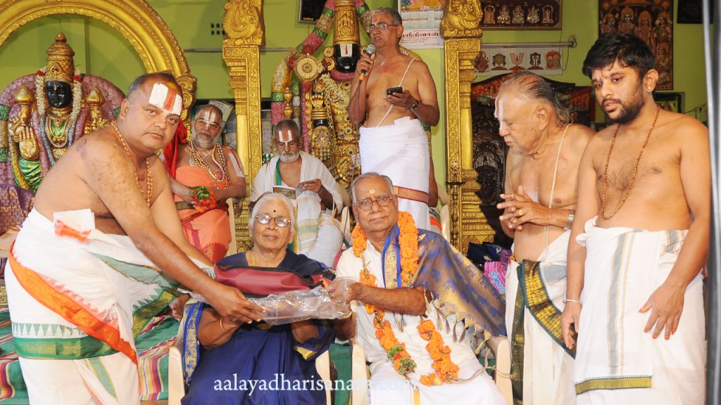 புதுச்சேரியில்,பல்வேறு வைணவப்பணிகளைச் செய்து, வைணவத்தை வளர்ப்பதை வாழ்க்கை நெறியாகக் கொண்ட அரங்க செல்வநம்பி ராமானுஜதாசர் அவர்களுக்கும், சீர்காழி டி.கே. சுவாமிநாதன் அவர்களுக்கும், பல வைணவ திவ்ய தேசங்களில் நடைபெறுகின்ற கருடசேவை குறித்து பிரச்சாரம் செய்து வருகின்ற திருச்சி கோபாலகிருஷ்ணன் அவர்களுக்கும், ஸ்ரீரங்கத்தில் ஒரு அருமையான ராமானுஜ கூடத்தை நடத்தி வைணவ கைங்கரியங்கள் புரிந்து வருகின்ற ஸ்ரீமான் வெங்கடசாமி ராமானுஜ அடிகளுக்கும், நாடி ஜோதிடரான சீர்காழி ஸ்ரீமான் சிவசாமி அவர்களுக்கும், (இவர் திருவரங்கம் கோயில் நாயக்கர் காலத்தில் எப்படி இருந்தது என்பது குறித்து மிக அருமையான ஆராச்சி செய்து முனைவர் பட்டத்தைப் பெற்றிருக் கிறார். பல நல்ல காரியங்களைச் செய்து வருகின்றார்.