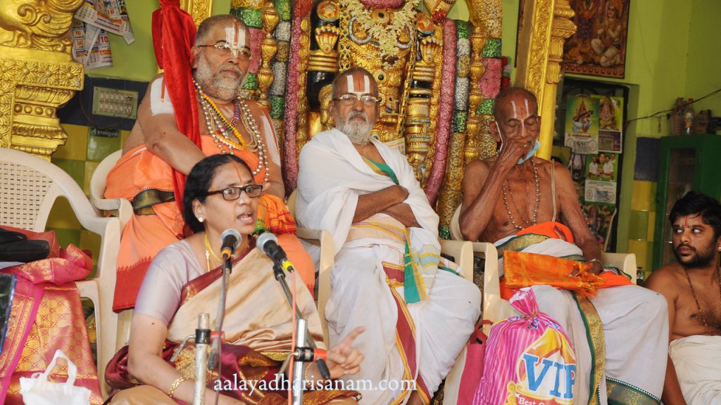 தொடர்ந்து நடைபெற்ற விழாவில், ஸ்ரீ கோஷ்டி பூர்ணாச்சாரியார் திருக்கோட்டியூர் சுவாமிகளுக்கு வைணவப் பேரறிஞர் விருது வழங்கப்பட்டது. திருச்சித்ரகூடம் ஸ்ரீமதி ஹரிப்பிரியா தேவநாதன் அவர்களுக்கு இவ்விழாவில் “சொல் அமுதச் செல்வி” விருது வழங்கப்பட்டது. தொடர்ந்து அவர் நந்தா விளக்கே அளத்தற்கரியாய் என்கிற தலைப்பில் மிக அற்புதமாக உரையாற்றினார்.