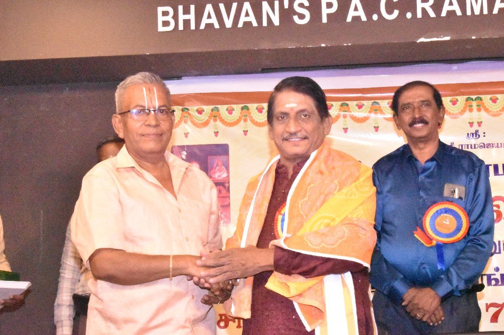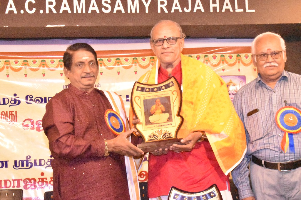 இந்த ஆண்டு ஸ்ரீமத் வெங்கட்ரமன பாகவதர் சுவாமி விருது மூத்த முகர்சிங் கலைஞர். “கலைமாமணி” திரு. ஏ. எஸ். கிருஷ்ணன் அவர்களுக்கு வழங்கப்பட்டது. அதற்கு அடுத்தபடியாக பாகவதர் விருது பத்திரிகையாளர் மற்றும் சௌராஷ்டிரா டைம் ஆசிரியர் திரு.டாக்டர்.எஸ். டி. ஞானேஸ்வரன் அவர்களுக்கு வழங்கப்பட்டது. விருது பெற்ற கலைஞர்களை பாராட்டி திரு. எஸ். பிரேம்குமார், நிறுவனர் சௌராஷ்ட்ரா கிளாசிக்கல் போரம் அவர்கள் வாழ்த்துரை வழங்கினார்.