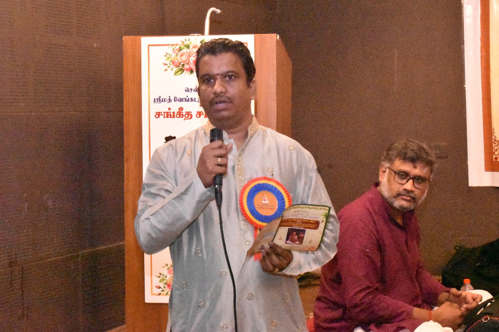 விருது பெற்ற கலைஞர்களின் ஏற்புரைக்கு பின் அன்றைய நிகழ்ச்சியின் முத்தாய்ப்பான இசை நிகழ்ச்சியாக விதுஷி.திருமதி. ராதா பார்த்தசாரதி அவர்களுடைய வாய்ப்பாட்டு நிகழ்ச்சி மிகவும் அற்புதமாக நடைபெற்றது. திருமதி. ராதா பார்த்தசாரதி அவர்கள் நிகழ்ச்சியில் முழுமையாக வெங்கட்ரமன பாகவதர் உடைய கீர்த்தனைகளை மட்டும் அழகாக பாடினார். மேடைகளில் அதிகம் பாடாத கீர்த்தனைகளையும் பாடாந்தரம் செய்து மிக அழகாக பாடினார். அவருக்கு உறுதுணையாக திரு. ஆர். சதீஷ்குமார் அவர்கள் வயலின் வாசித்தார். திரு. திருநாகேஸ்வரம் ஆர்.எஸ். மணிகண்டன் அவர்கள் சௌக்கியமாக பாடுபவருக்கு உறுதுணையாக அழகாக மிருதங்கம் வாசித்தார். விருது பெற்ற இசைக் கலைஞர் திரு.ஏ. எஸ். கிருஷ்ணன் அவர்கள் முகர்சிங் வாசித்தார். அன்றைய இசை நிகழ்ச்சி நிறைவில் வெங்கட்ரமன பாகவதருடைய மங்களம் பாட பூஜை மற்றும் மங்கள ஆர்த்திகளை திரு. ரகு அய்யா அவர்கள் செய்தார்கள். இனிதே நிகழ்ச்சி நிறைவுற்றது.